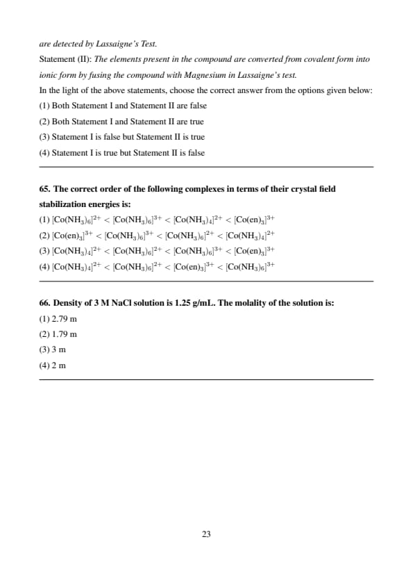 Given below are two statements: Statement (I): \textit{Nitrogen, sulphur, halogen, and phosphorus present in an organic compound are detected by Lassaigne's Test.