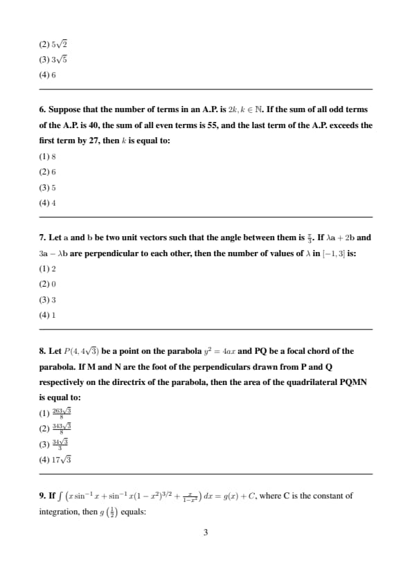- The Mathematics section in JEE Main 2025 22nd Jan Shift 2 Question Paper was reported as Moderate with 9 questions coming majorly from topics like Integration, Co-ordinate Geometry, etc.