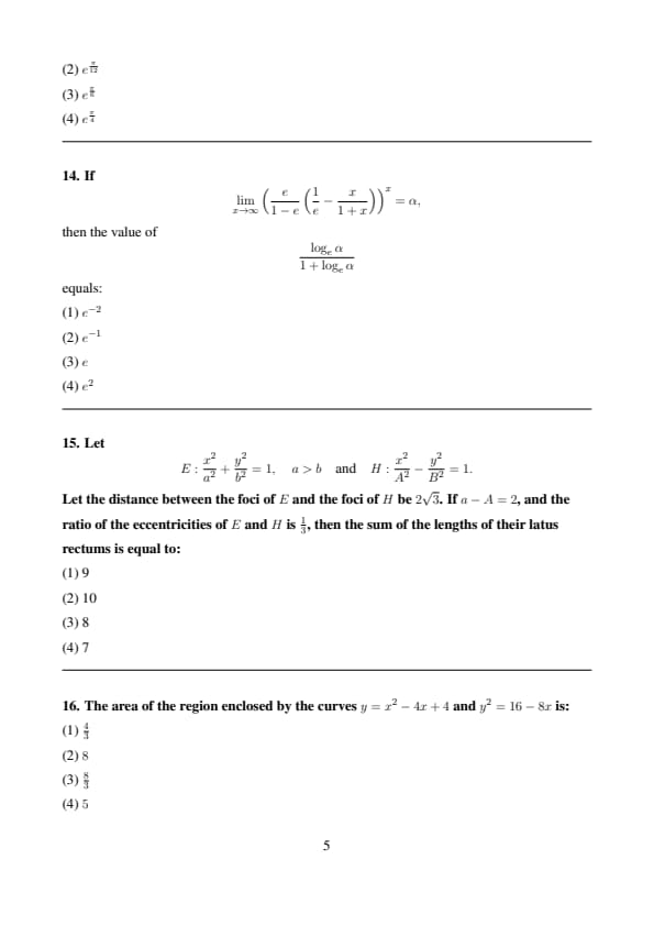 If \[ \lim_{x \to \infty} \left( \frac{e}{1 - e} \left( \frac{1}{e} - \frac{x}{1 + x} \right) \right)^x = \alpha, \] then the value of \[ \frac{\log_e \alpha}{1 + \log_e \alpha} \] equals: