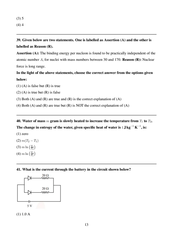 Assertion (A): The binding energy per nucleon is found to be practically independent of the atomic number \( A \), for nuclei with mass numbers between 30 and 170.