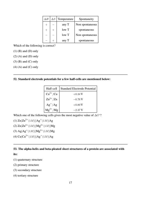 \[ \begin{array}{|c|c|c|c|} \hline \Delta H & \Delta S & Temperature & Spontaneity