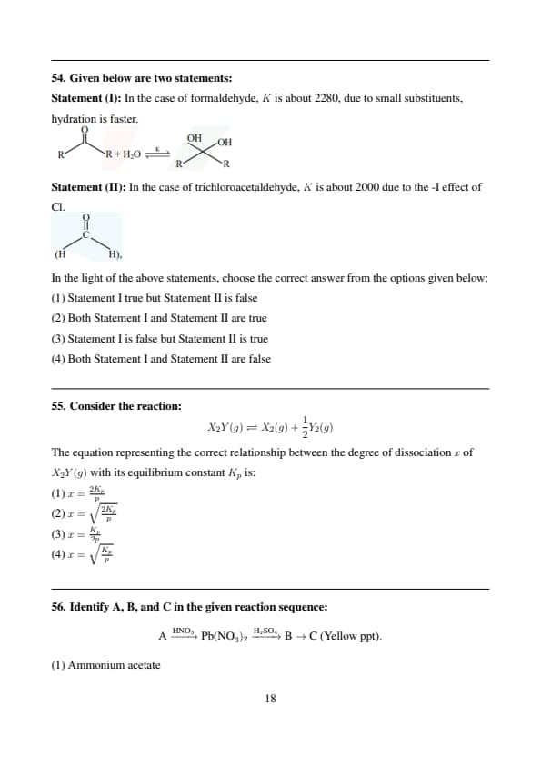 Statement (I): In the case of formaldehyde, \( K \) is about 2280, due to small substituents, hydration is faster.