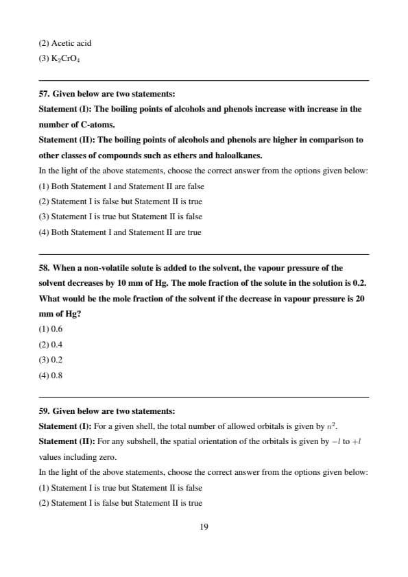 Statement (I): The boiling points of alcohols and phenols increase with increase in the number of C-atoms.