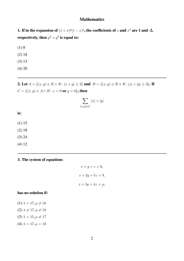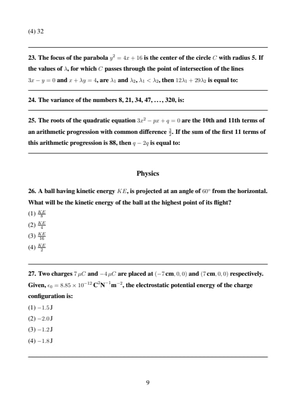 - The Mathematics section in JEE Main 2025 23rd Jan Shift 2 Question Paper was Tough and Lengthy with 9 questions coming majorly from topics like Integration, Co-ordinate Geometry, etc.