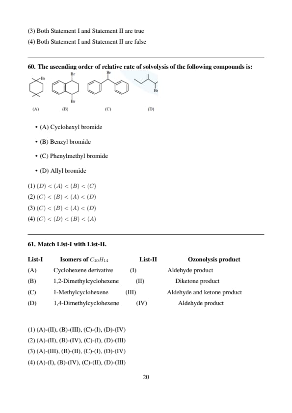List-I Isomers of \( C_{10}H_{14} \) List-II Ozonolysis product