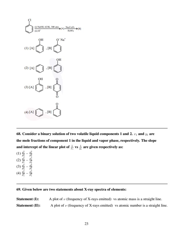 \[ C_6H_5Cl \xrightarrow{NaOH, 623K, 300 atm} [A] \xrightarrow{Na_2Cr_2O_7} [B] \xrightarrow{H^+} \]