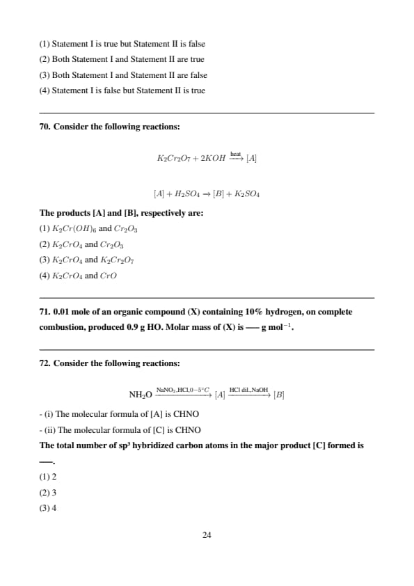 \[ K_2Cr_2O_7 + 2 KOH \xrightarrow{ heat } [A] \]