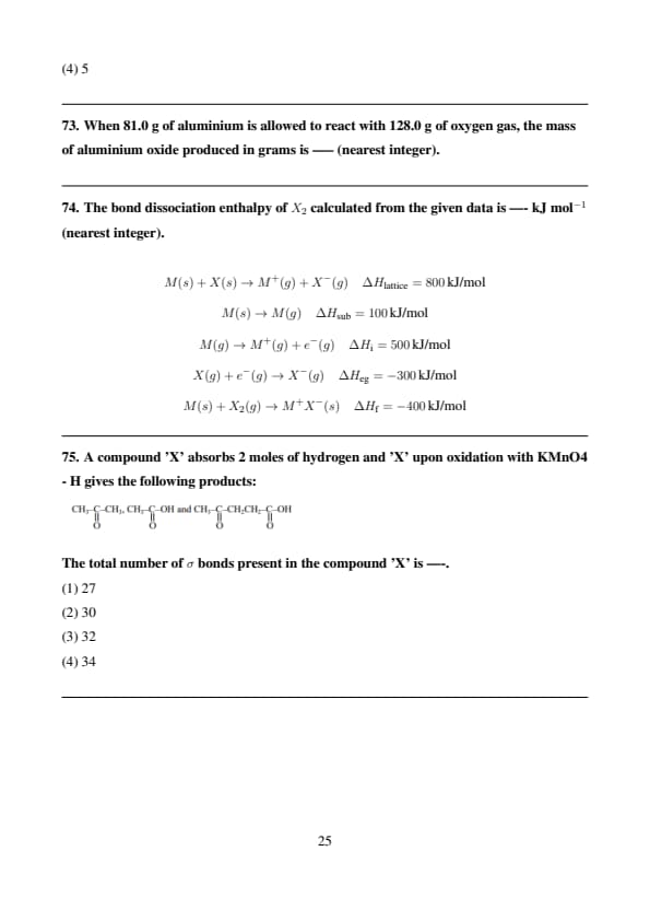 The question paper consists of a total of 75 questions, divided equally across the three subjects: