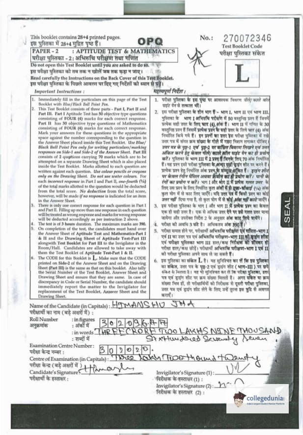 - Few Students found Very easy,One of the major differences in both the papers was the Maths section. It was comparatively easier in the second paper. The General paper had quizzes and all, so that was easy and interesting. B.Arch was easier than the first paper