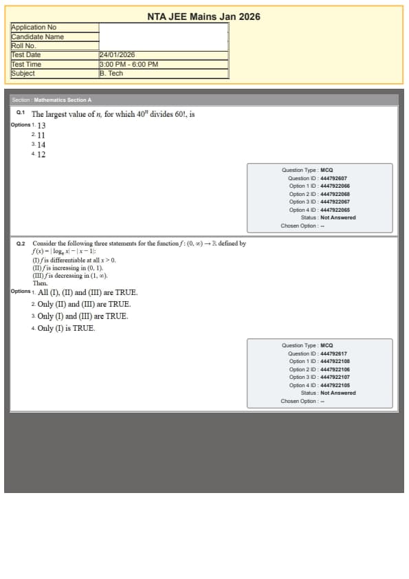 - Download JEE Main 2026 Session 1 Question Paper for all Shifts