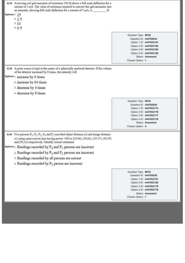Five persons \(P_1, P_2, P_3, P_4\) and \(P_5\) recorded object distance (\(u\)) and image distance (\(v\)) using same convex lens having power \(+5\) D as (25,96), (30,62), (35,37), (45,35) and (50,32) respectively. Identify correct statement.