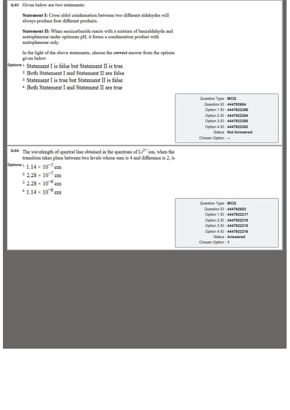 Statement II: When semicarbazide reacts with a mixture of benzaldehyde and acetophenone under optimum pH, it forms a condensation product with acetophenone only.