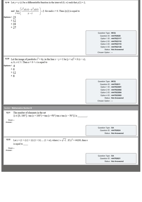 Let \(y=y(x)\) be a differentiable function in the interval \((0,\infty)\) such that \(y(1)=2\), and \[ \lim_{t\to x}\left(\frac{t^2y(x)-x^2y(t)}{x-t}\right)=3 for each x>0. \]