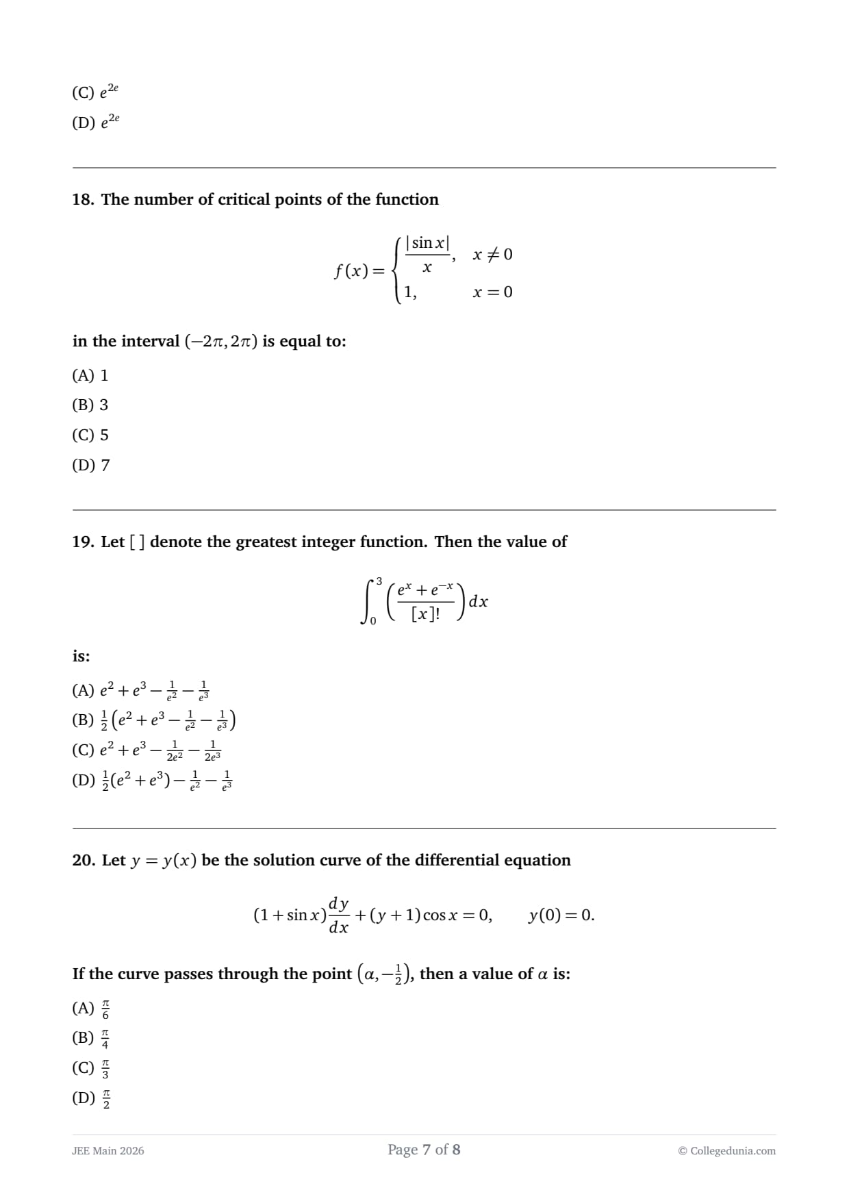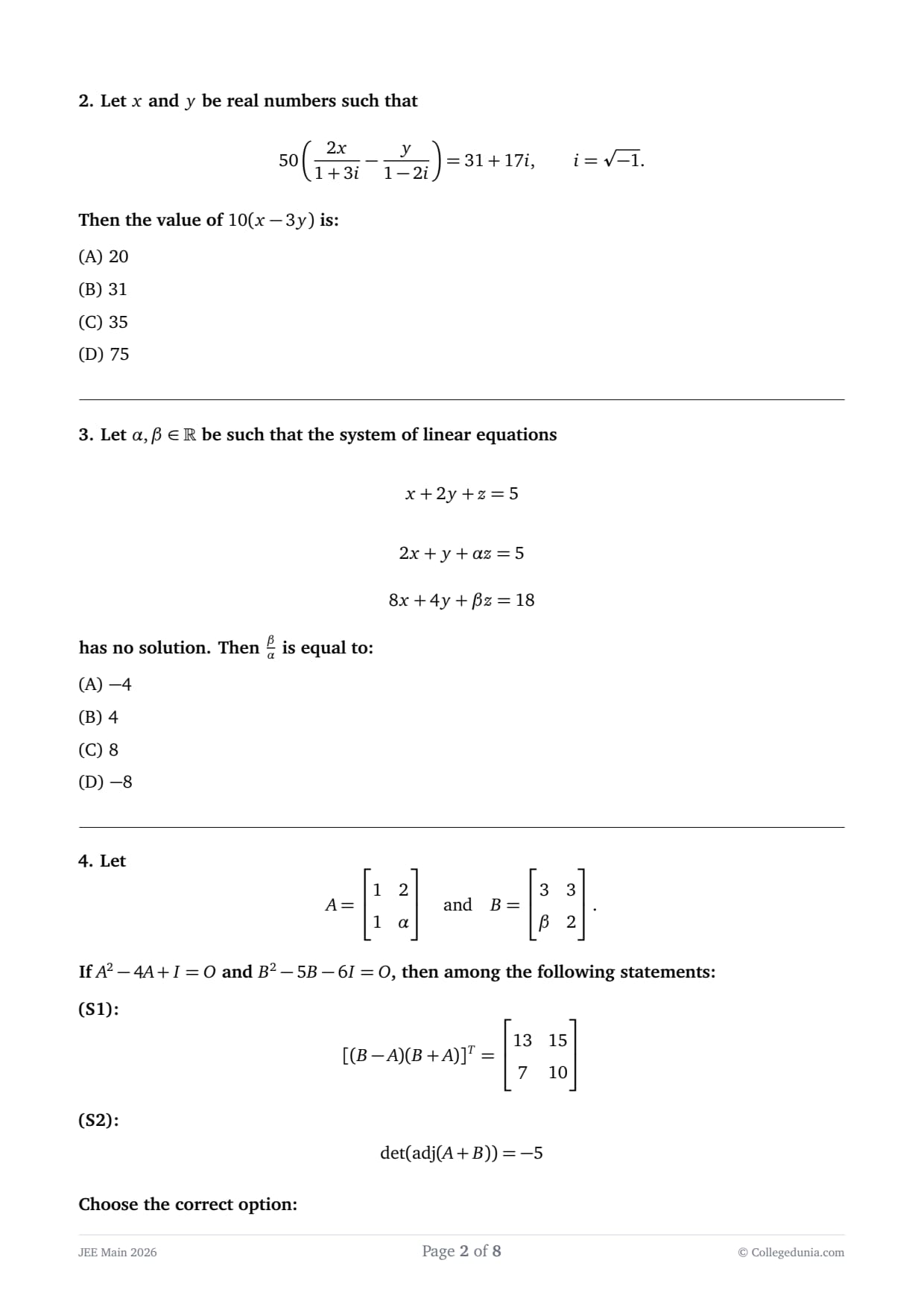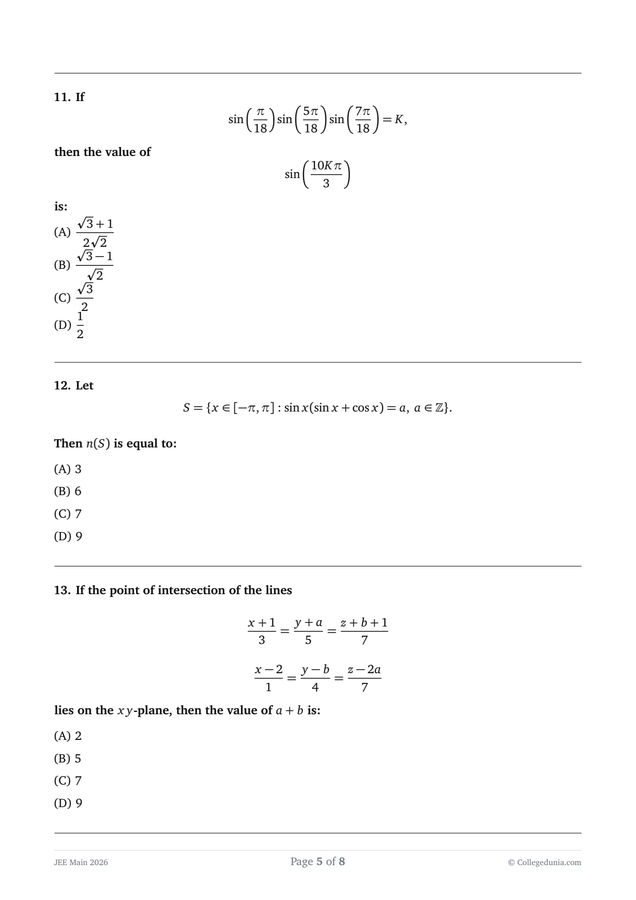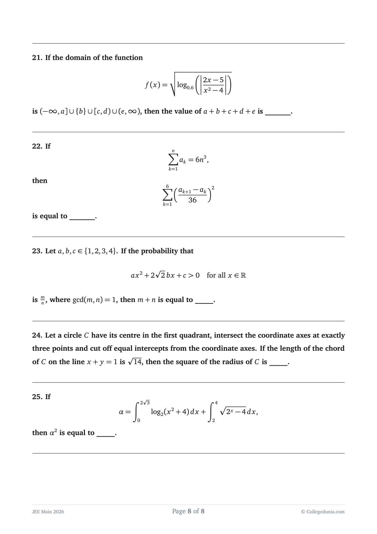 - The JEE Main Mathematics Question Paper contains a total of 25 questions.