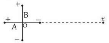 Two short electric dipoles \(A\) and \(B\) having dipole moments \(p_1\) and \(p_2\) respectively are placed with their axes mutually perpendicular as shown in the figure. The resultant electric field at a point \(x\) is making an angle of \(60^\circ\) with the line joining points \(O\) and \(x\). The ratio of dipole moments \( \dfrac{p_2}{p_1} \) is: