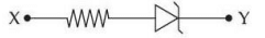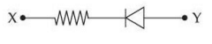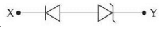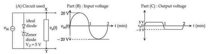For the given circuit (shown in part A) the time dependent input voltage \(v_{in}(t)\) and corresponding output \(v_o(t)\) are shown in parts (B) and (C), respectively. Identify the components that are used in the circuit between \(X\) and \(Y\).