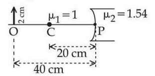 Refer the figure below. \( \mu_1 \) and \( \mu_2 \) are refractive indices of air and lens material respectively. The height of image will be _____ cm.
