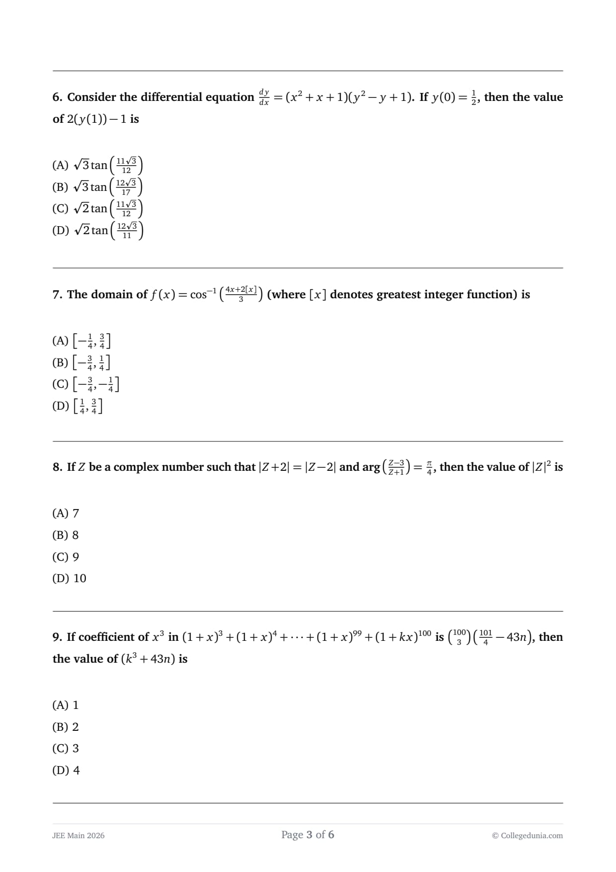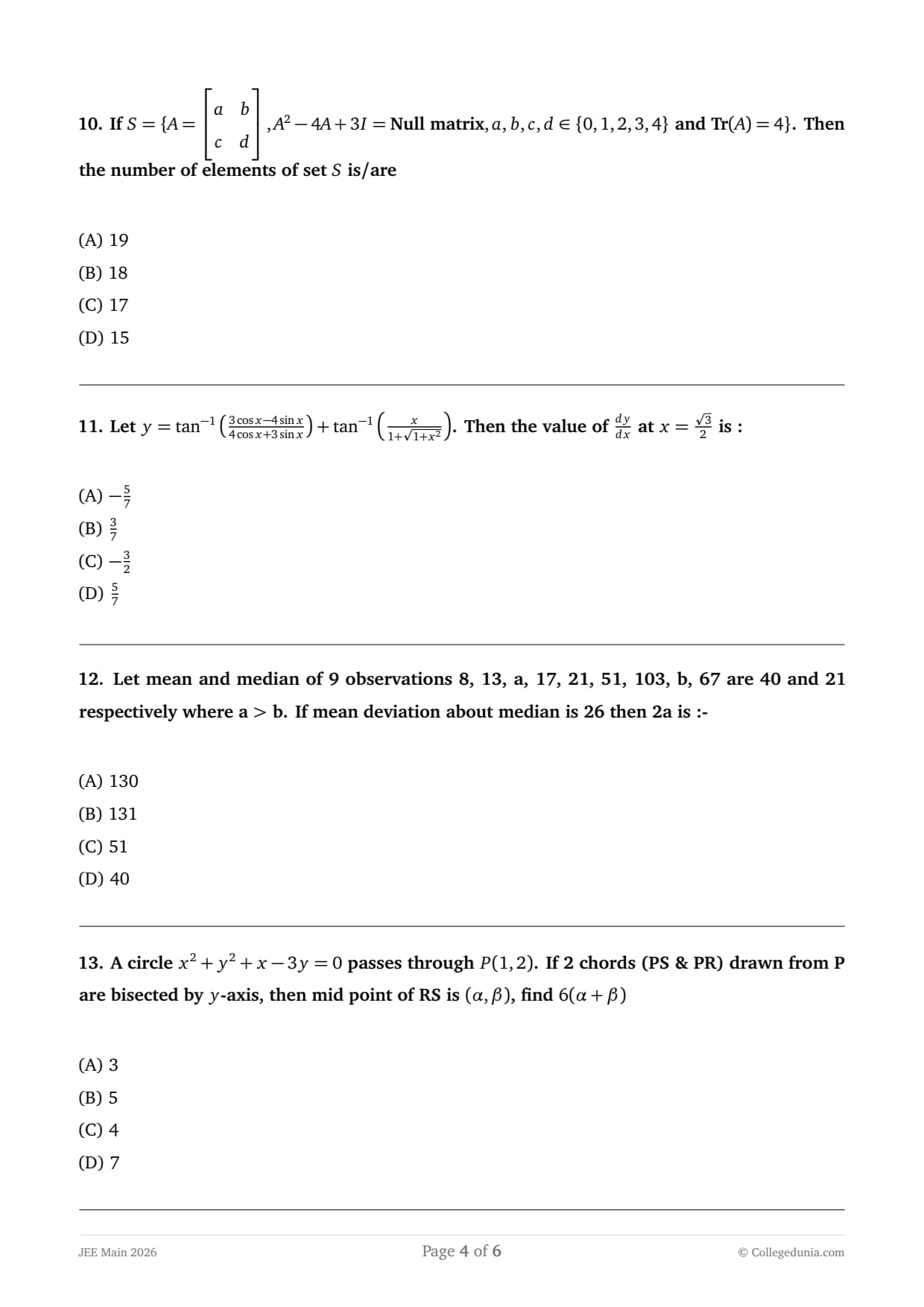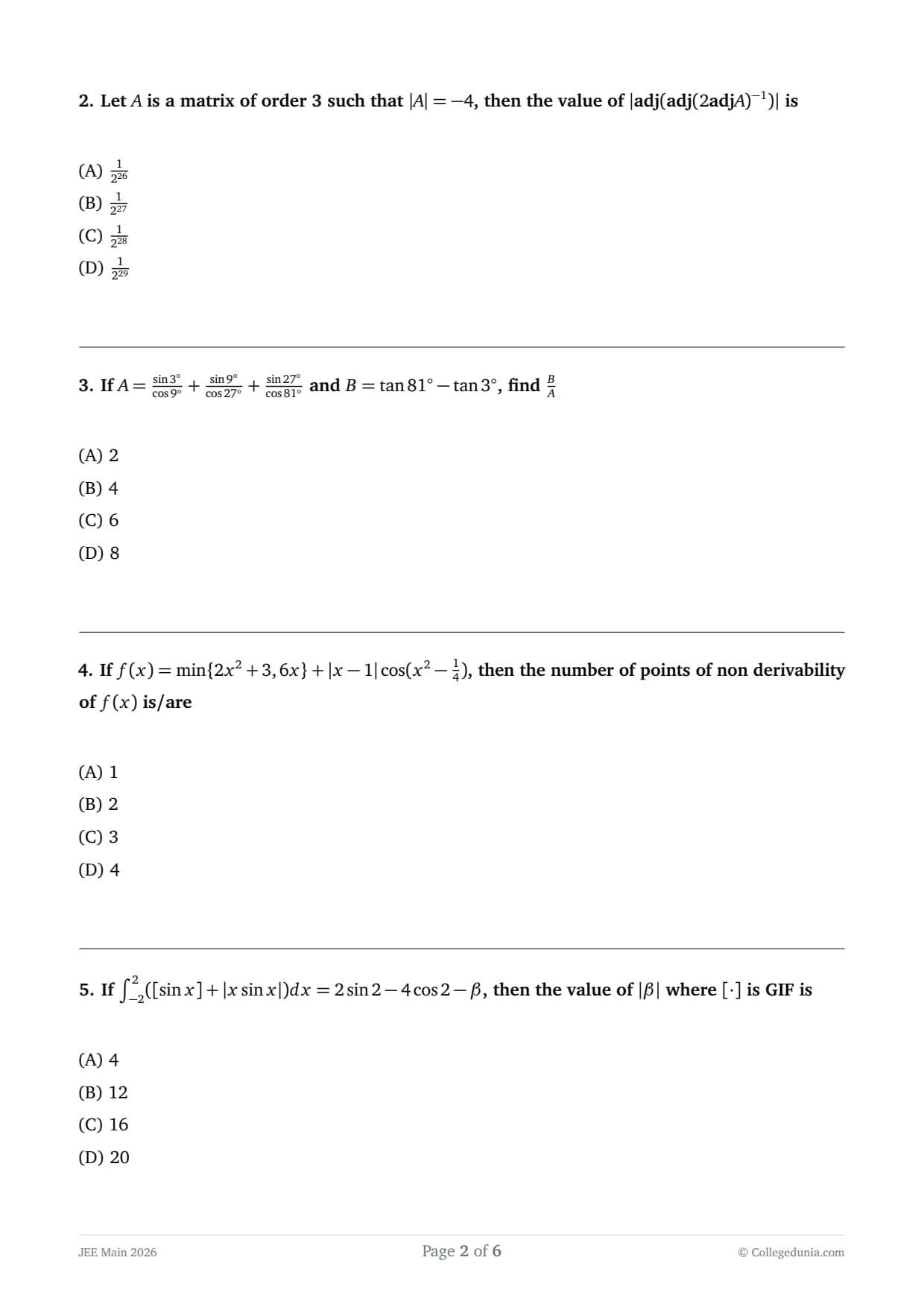 - The JEE Main Mathematics Question Paper contains a total of 25 questions.