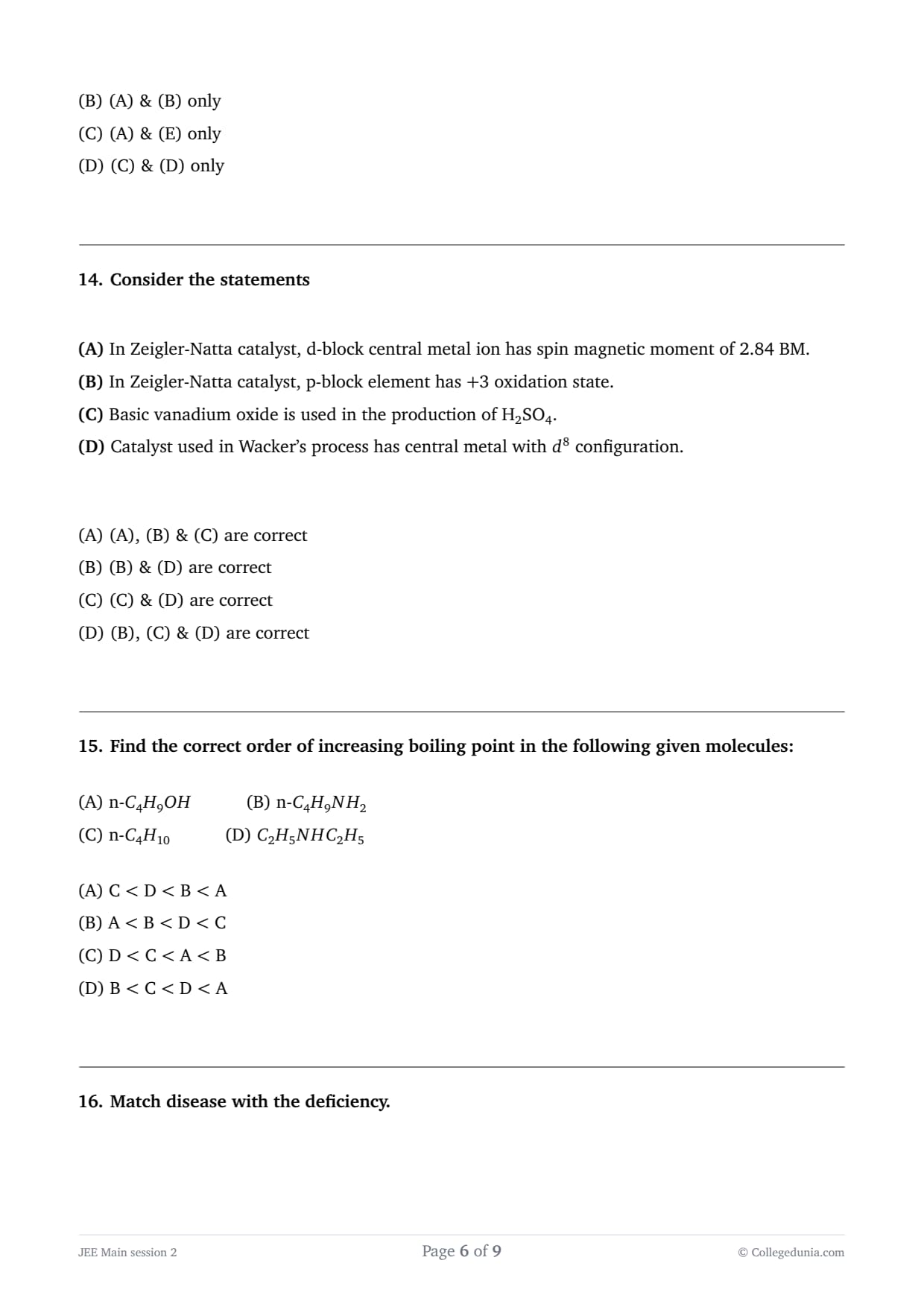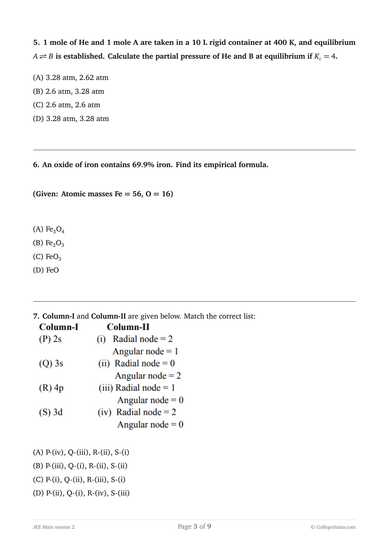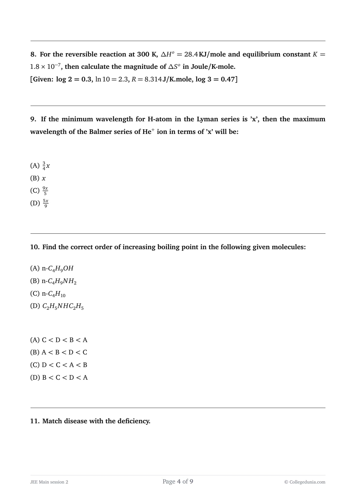 - The JEE Main Chemistry Question Paper contains a total of 25 questions.