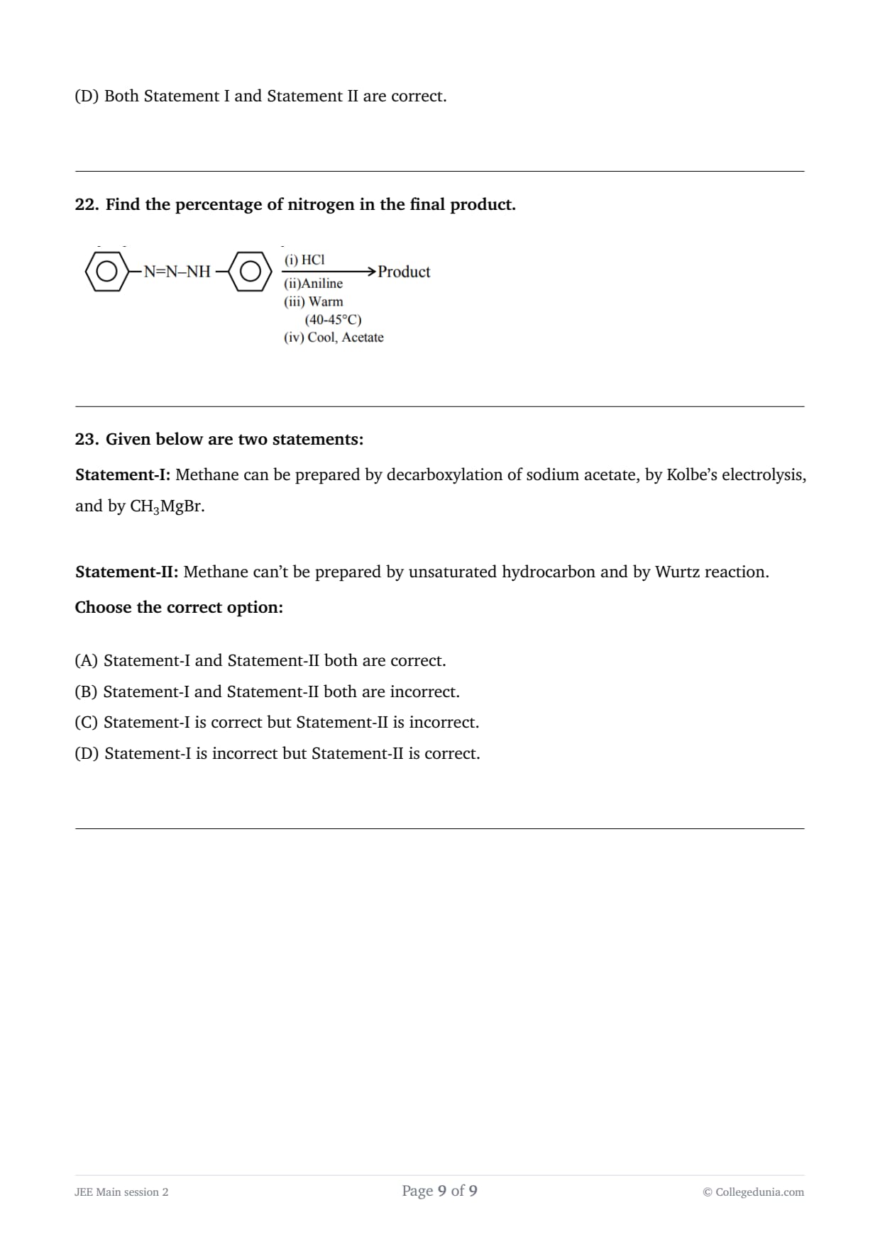 Statement-II: Methane can’t be prepared by unsaturated hydrocarbon and by Wurtz reaction.