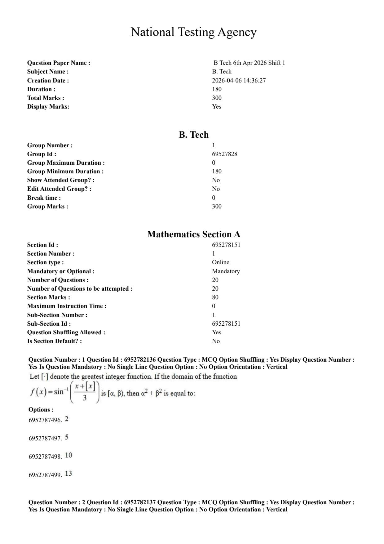 JEE Main 2026 April 6 Shift 1 Question Paper with Solution PDF