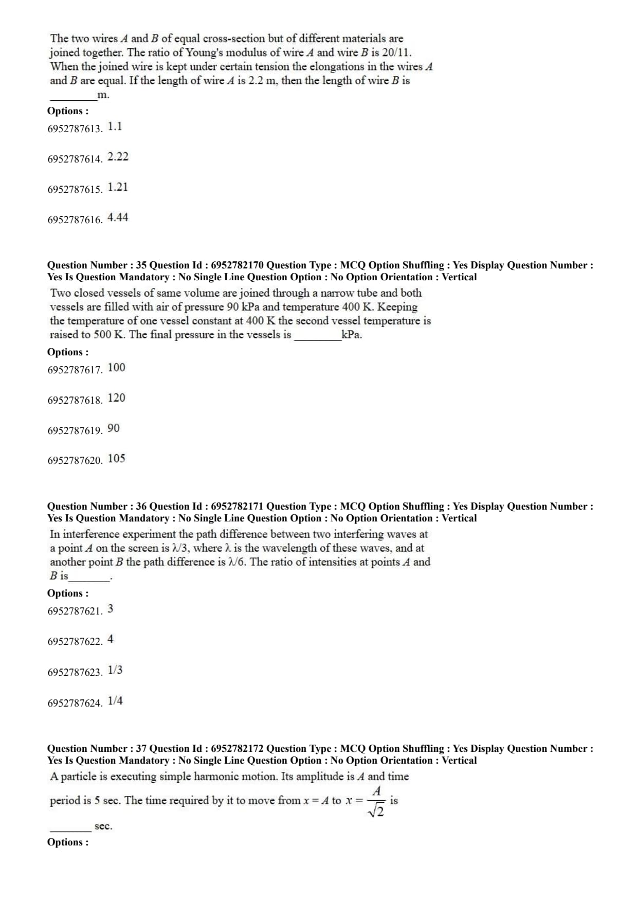 | Type of Questions | Multiple Choice Questions (MCQs) + Numerical Value Questions |