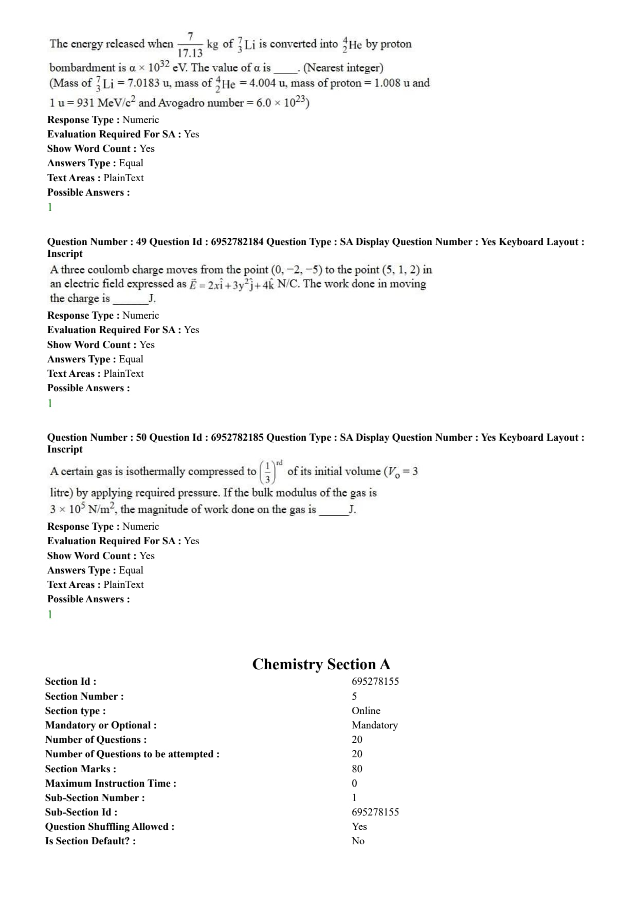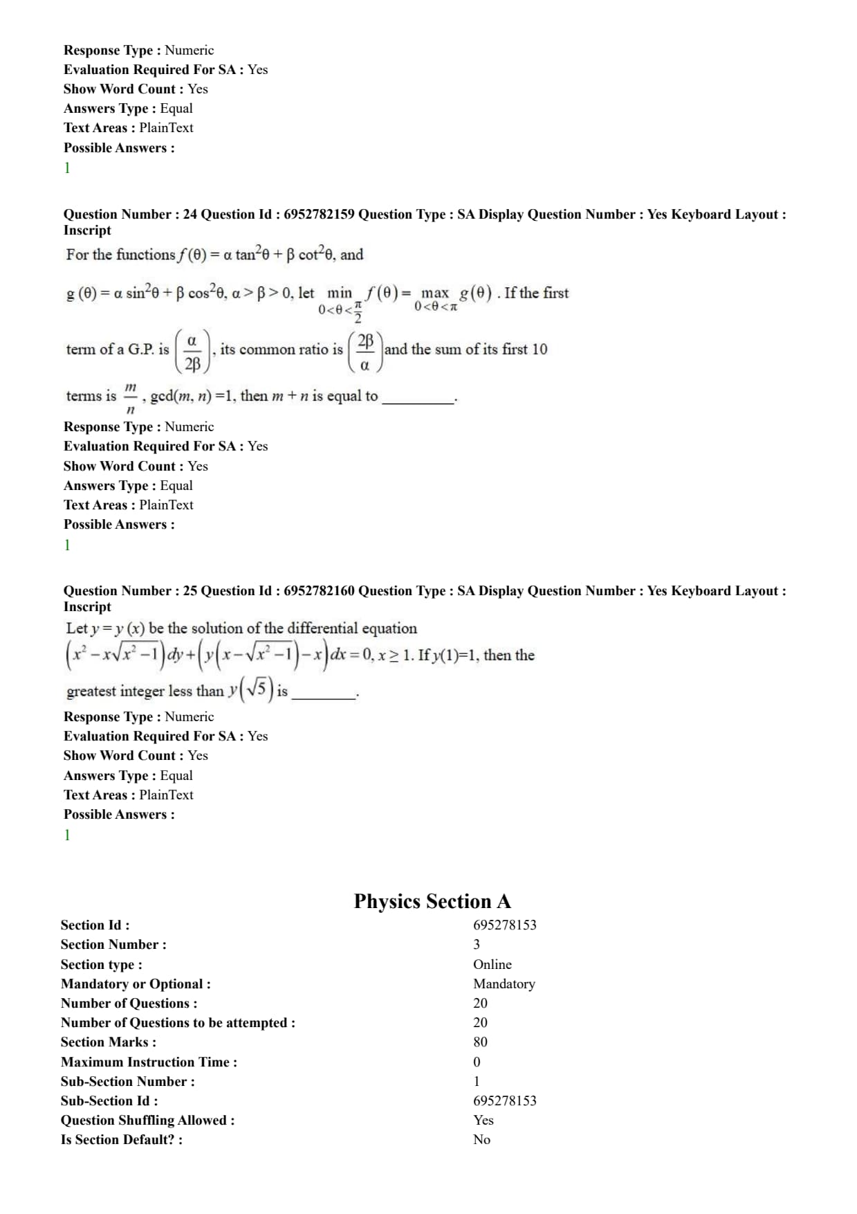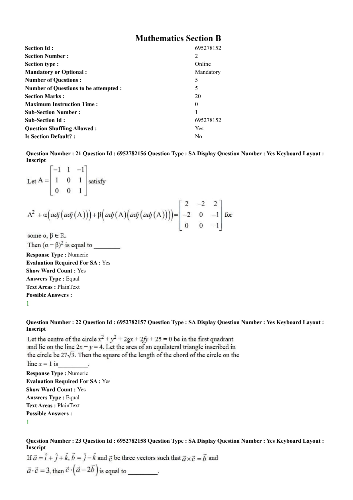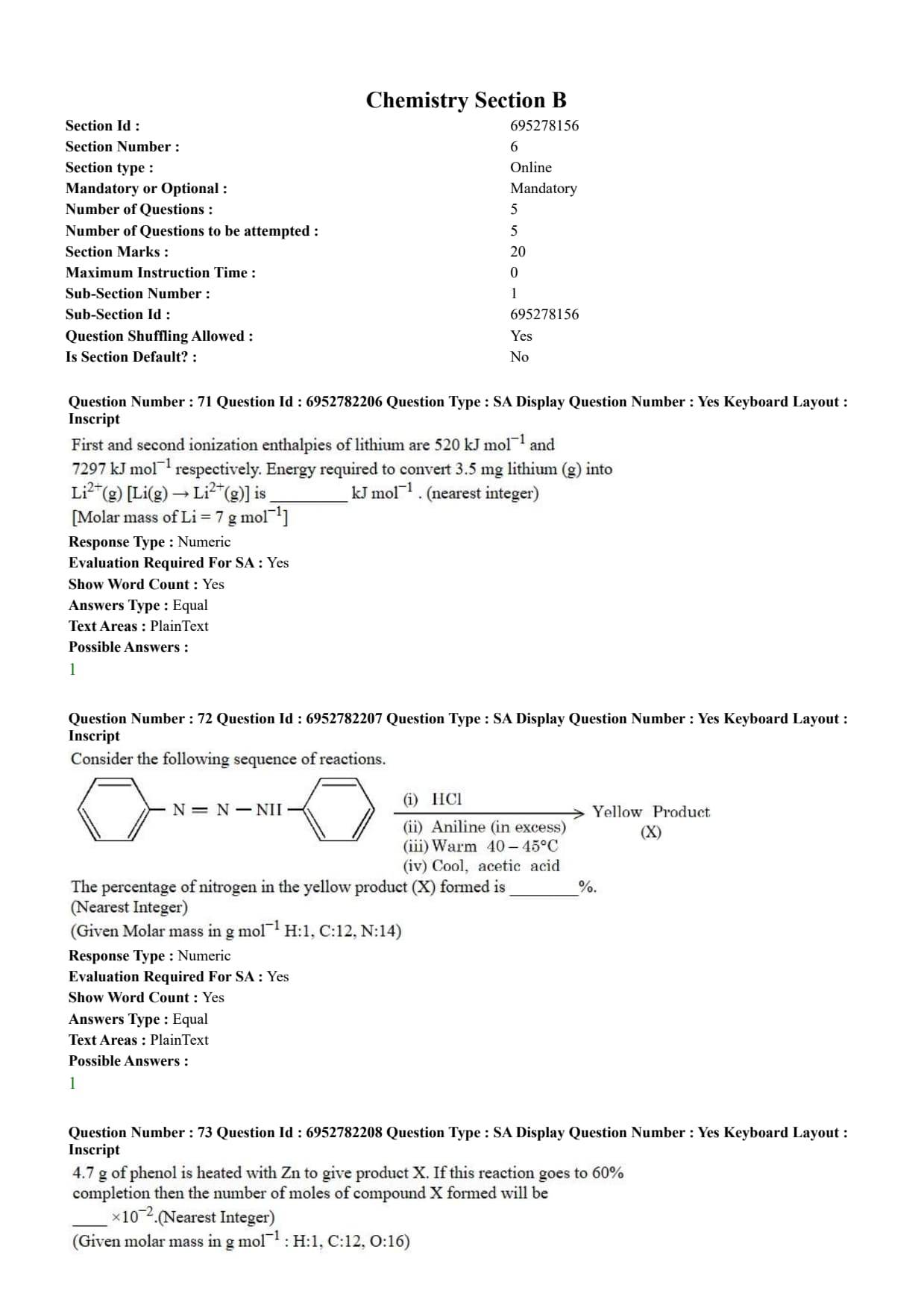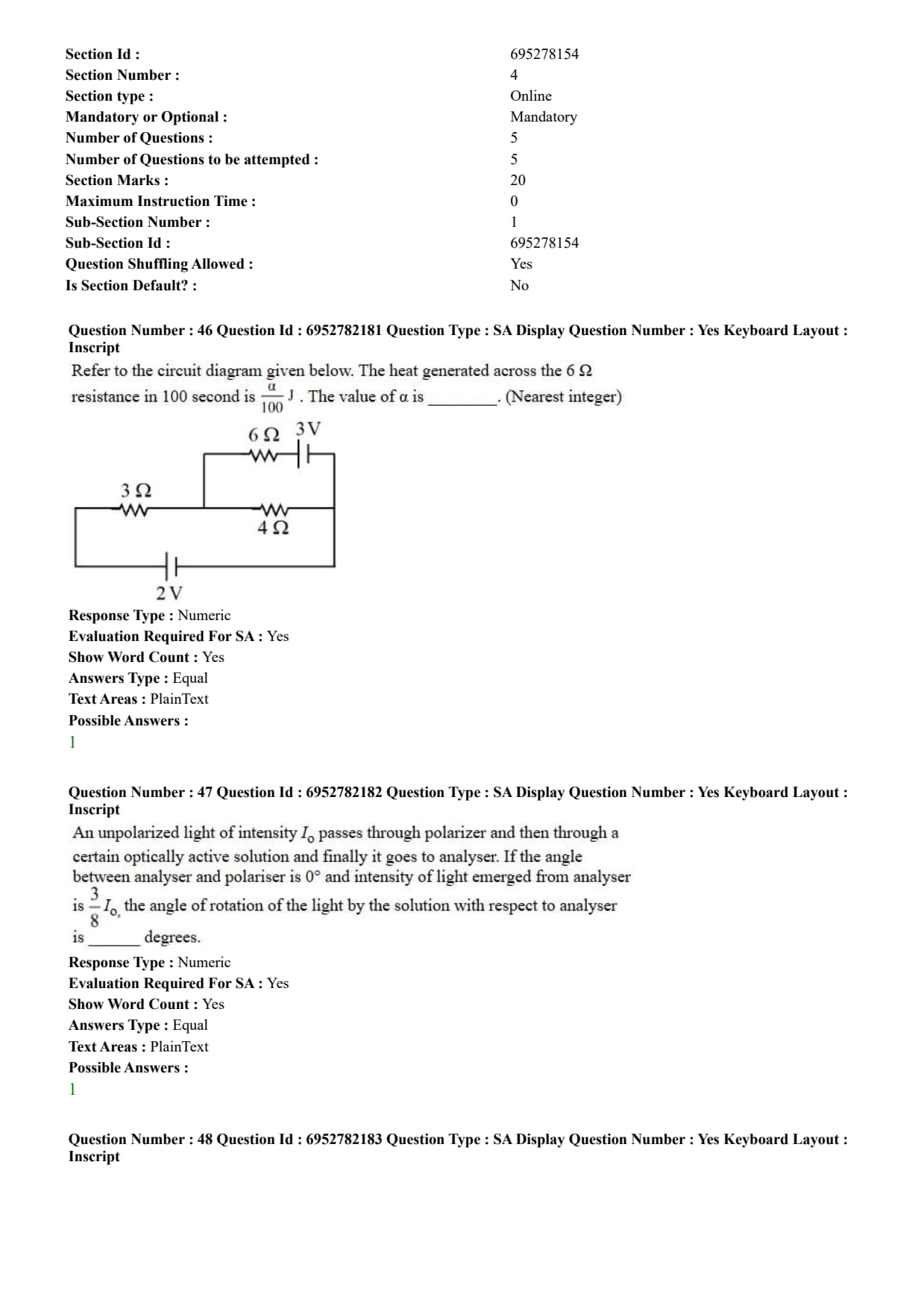 | Marking Scheme | +4 for correct answer & -1 for incorrect MCQ and Numerical Value-based Questions |
