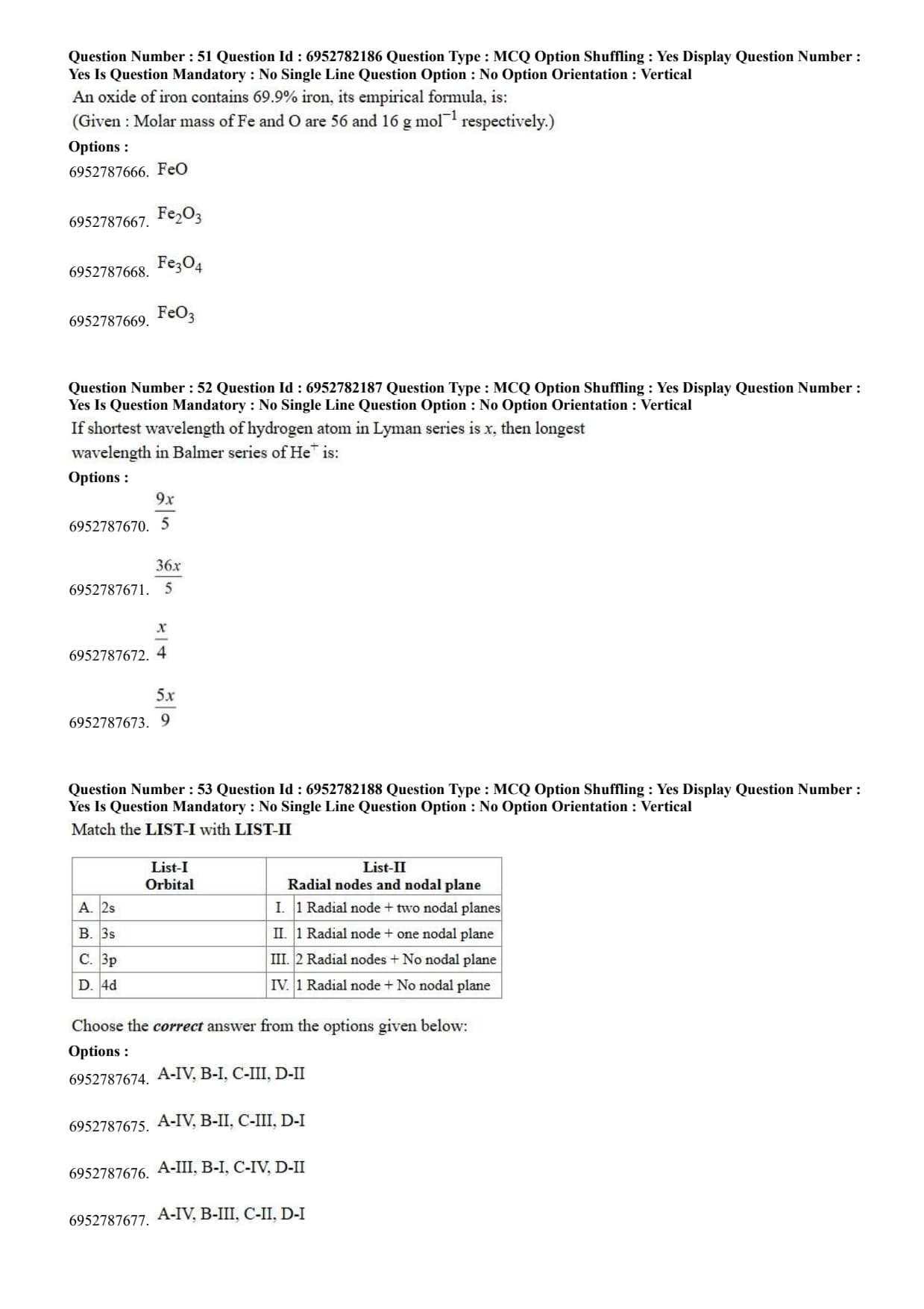 List-II (Radial nodes and nodal plane):