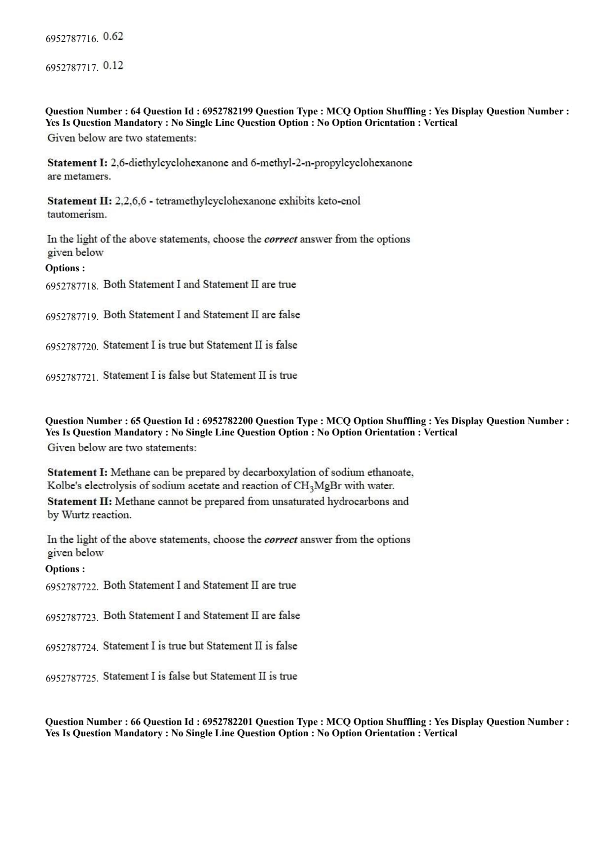 Statement I: 2,6-diethylcyclohexanone and 6-methyl-2-n-propylcyclohexanone are metamers.