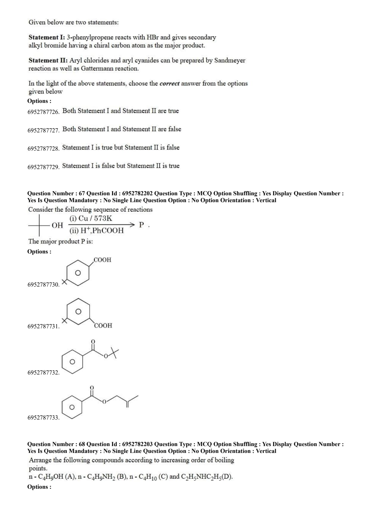 Statement II: Aryl chlorides and aryl cyanides can be prepared by Sandmeyer reaction as well as Gattermann reaction.