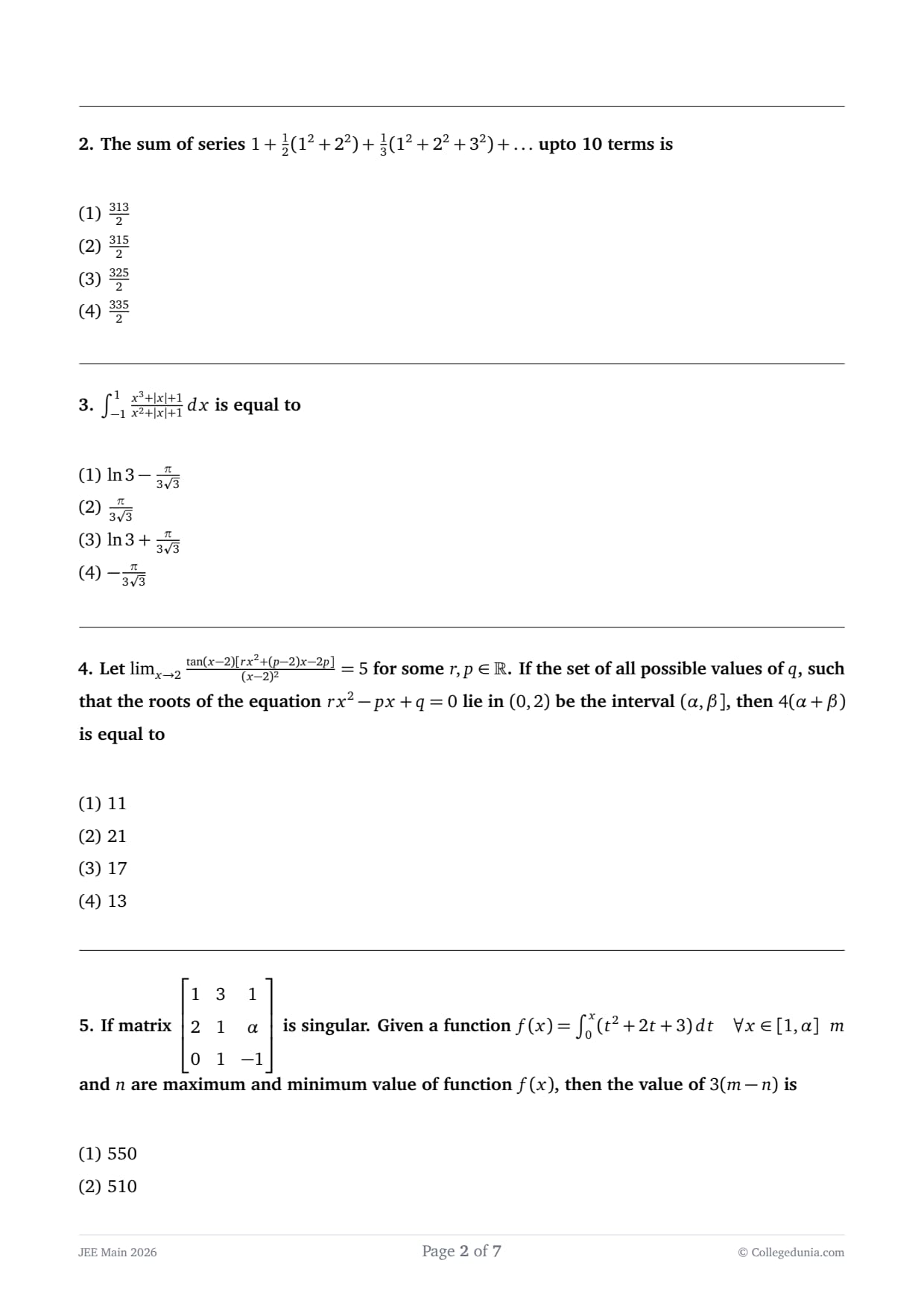 - The JEE Main Mathematics Question Paper contains a total of 25 questions.
