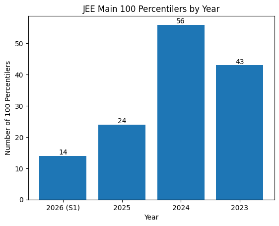 | Year | Topper Raw Marks (Approx) | No. of 100 Percentilers |