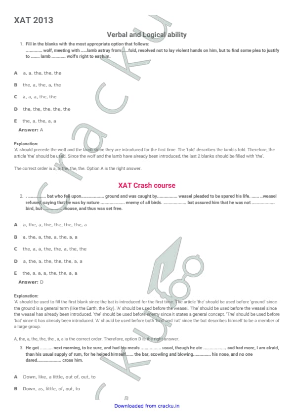 XAT 2013 Question Paper PDF XAT 2013 Answer Key PDF