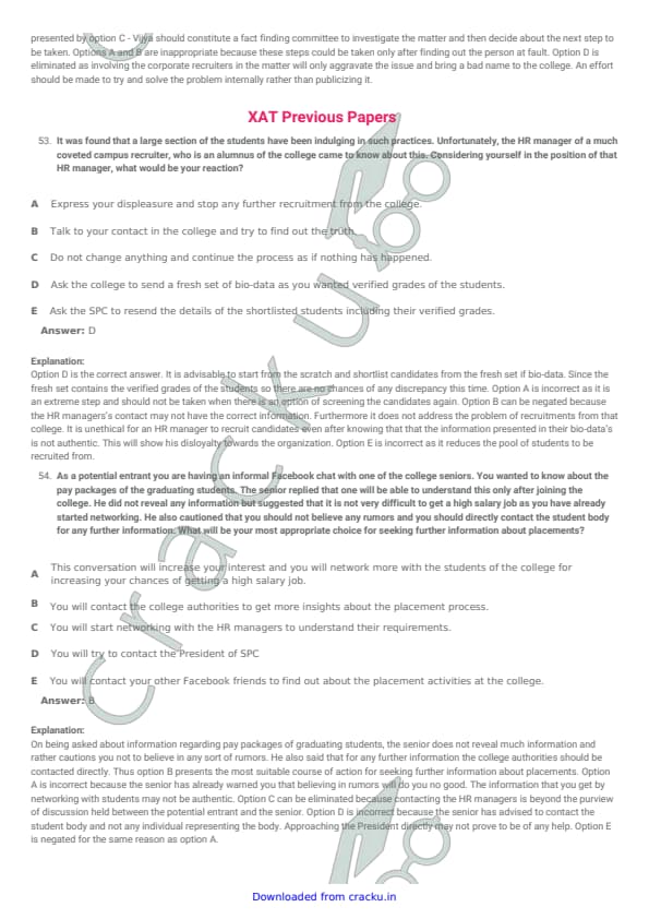 Collegedunia has provided XAT Previous Year Question paper pdf with answer key in the links given below:
