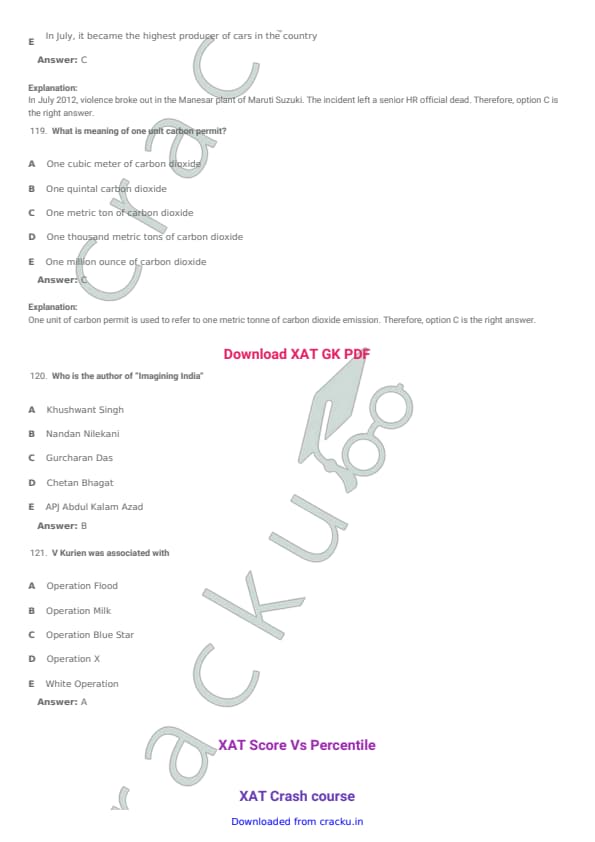 XAT 2013 Question paper with answer key pdf conducted on January 3, 2013 is available for download. The exam was successfully organized by XLRI Jamshedpur. The question paper comprised a total of 120 questions divided among four sections. (PDF Source: cracku.in)