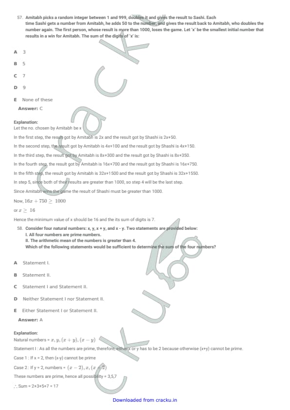 Ratan, Shri, Tamal and Upanshu started working for Win Lose in January. Ratan was terminated after 4 months, Shri was terminated after 7 months, Tamal was terminated after 10 months, while Upanshu was not terminated even after 12 months. The table below, partially, lists their monthly profits (in Rs. ‘000’) over the 12-month period, where x, y and z are masked information.