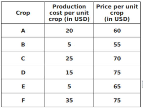 If Geetha plans a change of crop the soil should be left fallow for one month; however, if the same crop is sown no fallow time is needed. Sowing takes place only at the beginning of a month. Geetha can only harvest a maximum of 1000 units of any crop at any point in time. The production cost per unit (incurred at the time of sowing) and price per unit of crop are as follows: