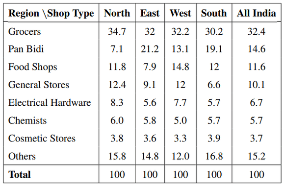 Inference I: The number of Grocers per-thousand-population is the highest in North India.
