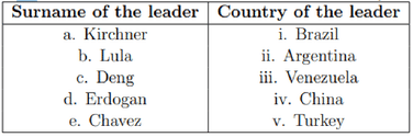 Match the surnames of head of states (former or current) to the countries.
