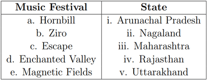 Match the Music festivals to their states: