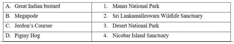 Match the following animals/birds with the Wildlife Sanctuary, National Park or a region that they naturally occur.