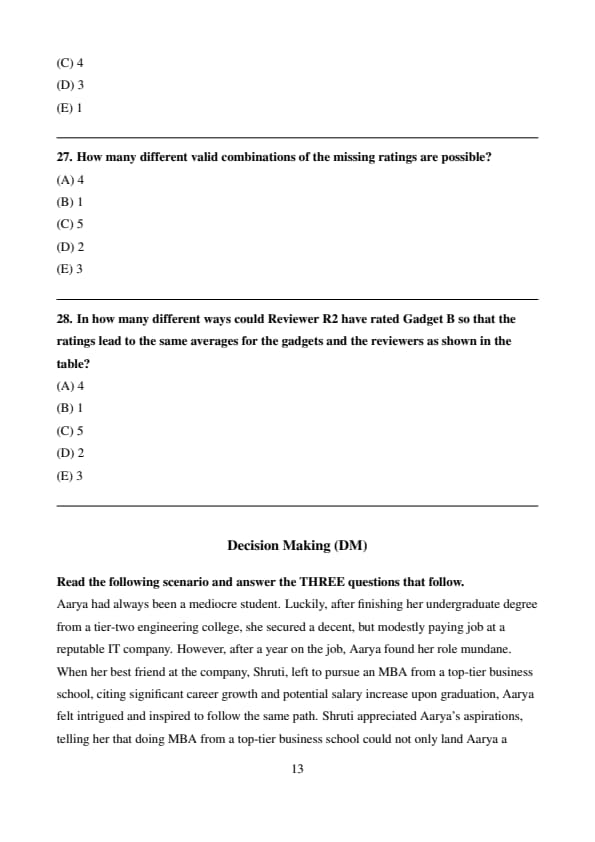 Aarya had always been a mediocre student. Luckily, after finishing her undergraduate degree from a tier-two engineering college, she secured a decent, but modestly paying job at a reputable IT company. However, after a year on the job, Aarya found her role mundane. When her best friend at the company, Shruti, left to pursue an MBA from a top-tier business school, citing significant career growth and potential salary increase upon graduation, Aarya felt intrigued and inspired to follow the same path.