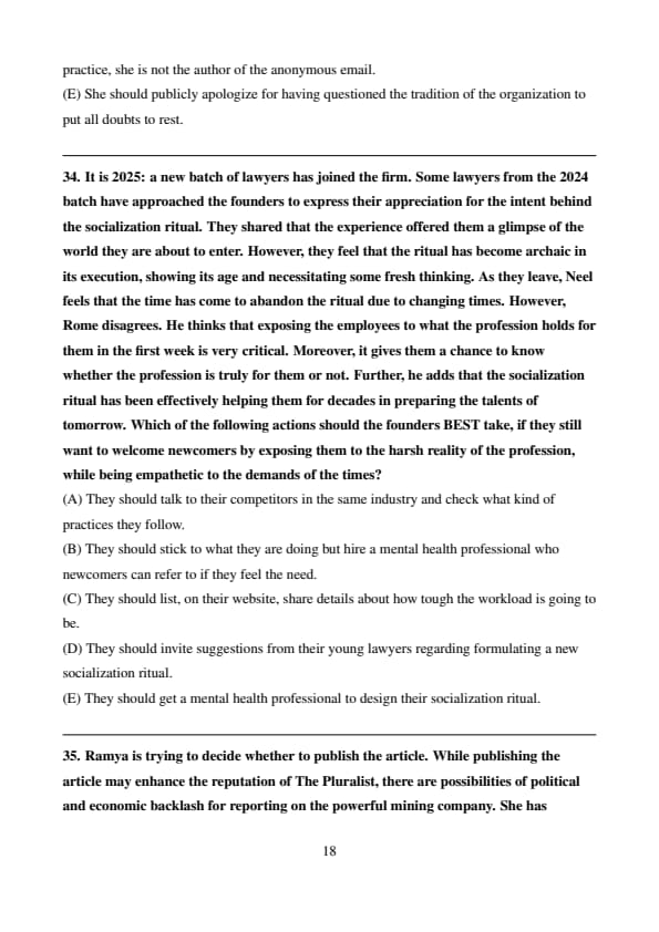 One of the lawyers, Ms. Lisa Simpleton, who joined in 2023 and went through the same socialization ritual, found it unwelcoming. She believes that other newcomers might also share the same opinion. Lisa thinks that the current generation, especially post-COVID, needs more friendly welcome, and the firm must put an end to this ritual.