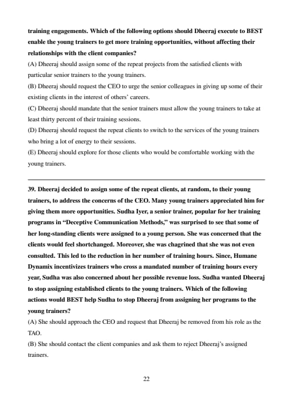 Dheeraj, a senior trainer, takes over as the TAO. As soon as he assumes the office, the CEO shares a concern with him: “We have a lot of young trainers who we have recently recruited. Since they are not known to the outside world, they do not get enough opportunities. Many of them are impatient to prove their mettle. Unless they are assigned more programs, we risk losing them rapidly.”
