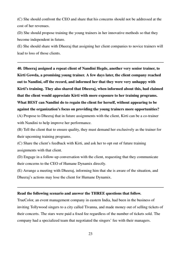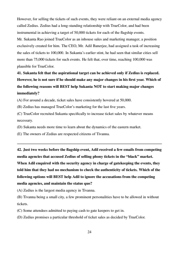 TrueColor, an event management company in eastern India, had been in the business of inviting Tollywood singers to a city called Tivanna, and made money out of selling tickets of their concerts. The stars were paid a fixed fee regardless of the number of tickets sold. The company had a specialized team that negotiated the singers’ fee with their managers. However, for selling the tickets of such events, they were reliant on an external media agency called Zedius. Zedius had a long-standing relationship with TrueColor, and had been instrumental in achieving a target of 50,000 tickets for each of the flagship events.