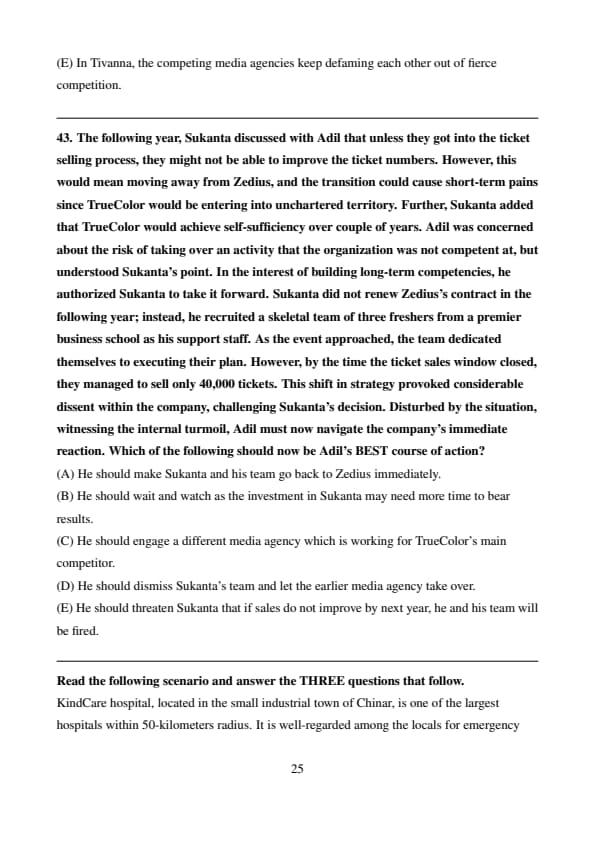 Read the following scenario and answer the THREE questions that follow.