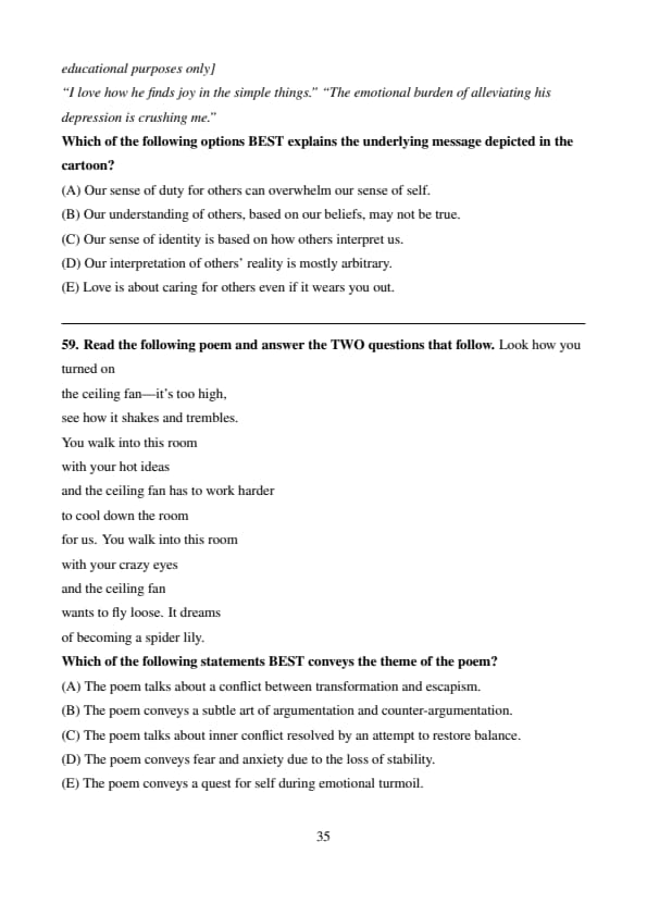 Read the following poem and answer the TWO questions that follow.