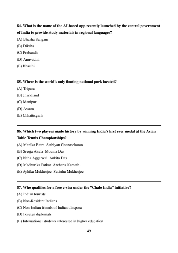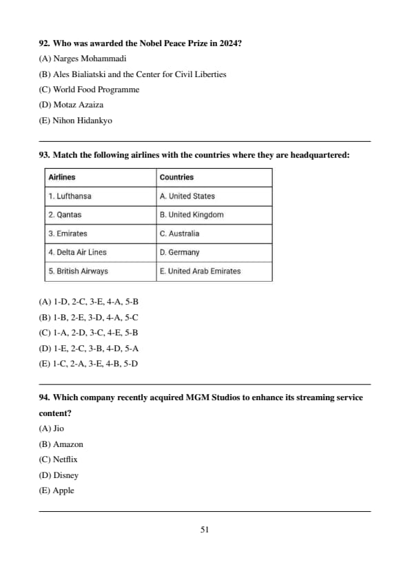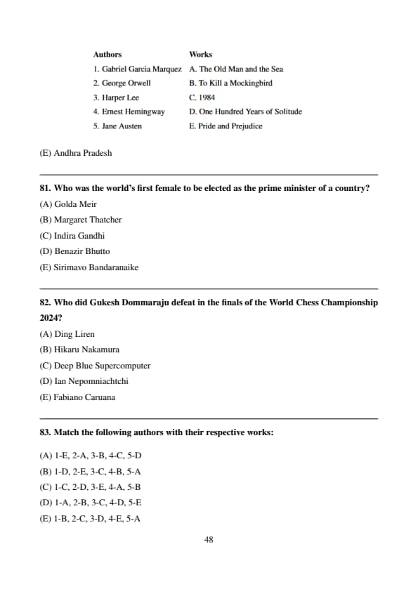 Thus, the correct answer is \( \boxed{D} \). Quick Tip: Gukesh Dommaraju defeated Ian Nepomniachtchi in the 2024 World Chess Championship.
