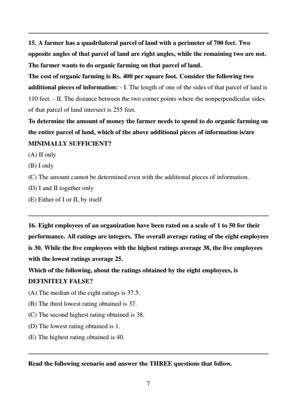 To determine the amount of money the farmer needs to spend to do organic farming on the entire parcel of land, which of the above additional pieces of information is/are MINIMALLY SUFFICIENT?