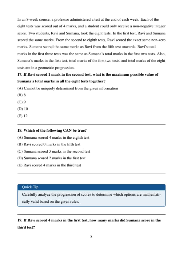 score. Two students, Ravi and Sumana, took the eight tests. In the first test, Ravi and Sumana